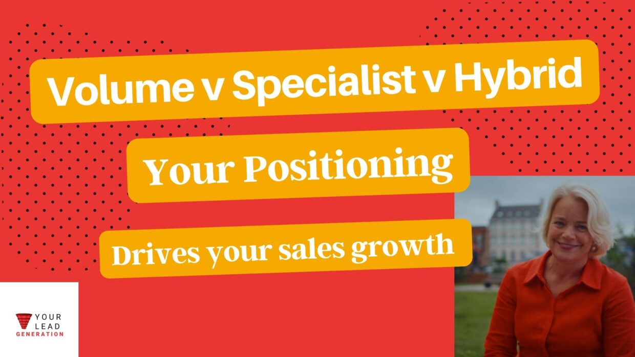 Why your position drives sales performance. Are you a volume player, a specialist or a hybrid? Most B2B service businesses think their growth problem is marketing and if they turn to us its a numbers game (more on that later). … Read More